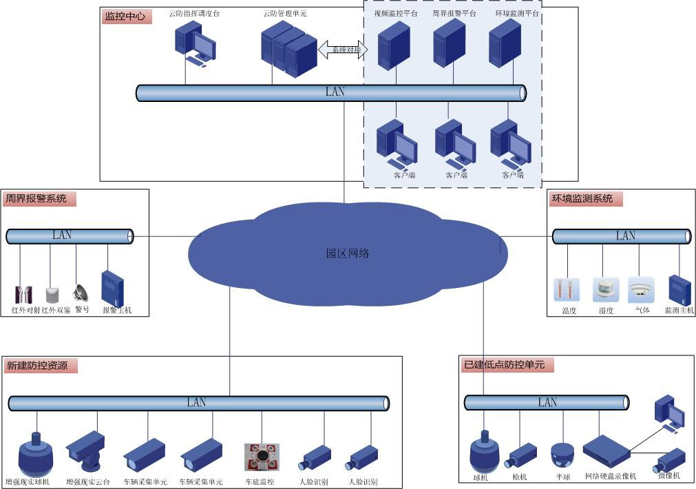 7、以立體防控系統(tǒng)平臺(tái)為中心,整合已建信息系統(tǒng)的資源,以園區(qū)安防業(yè)務(wù)為核心,利用先進(jìn)的軟件技術(shù),使之能在一個(gè)界面中完成所有業(yè)務(wù)系統(tǒng)的調(diào)用。